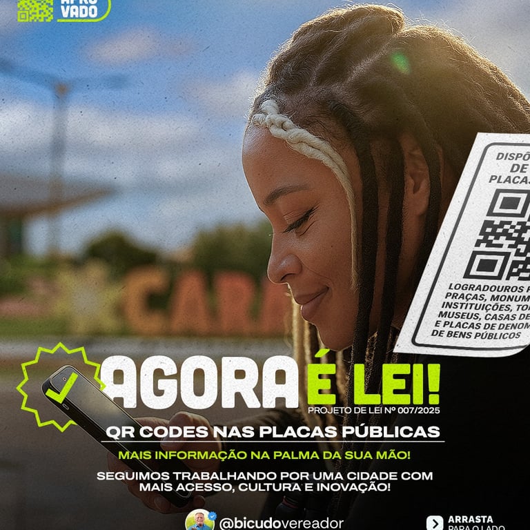Uma iniciativa inovadora apresentada pelo vereador Francisco Hamilton Bezerra (Bicudo - PP) promete transformar a forma como a história e a cultura de Caraúbas são acessadas. Tramita na Câmara Municipal o projeto de lei de sua autoria que institui o programa "História ao Alcance: QR Codes de Caraúbas", focado em usar a tecnologia para preservar e divulgar o patrimônio local.