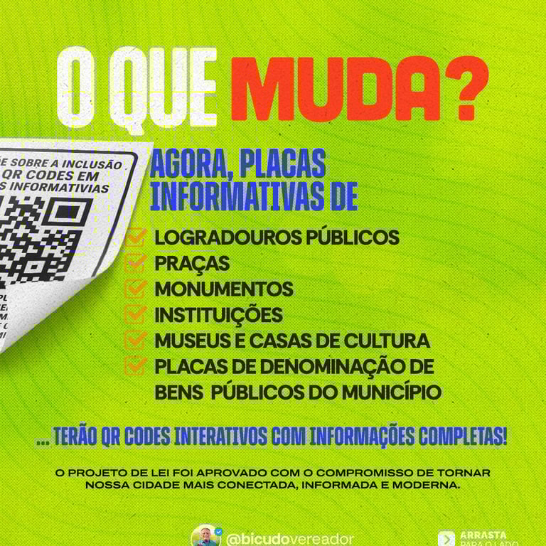 A proposta do vereador Bicudo prevê a inclusão estratégica de QR Codes (códigos de resposta rápida) em placas informativas de logradouros públicos, praças, monumentos, instituições, bens tombados, museus, casas de cultura e outras denominações de bens públicos. Ao escanear o código com um smartphone, qualquer pessoa poderá ser direcionada a um portal digital oficial (preferencialmente da Câmara Municipal) com informações detalhadas sobre a história por trás daquele local ou nome.