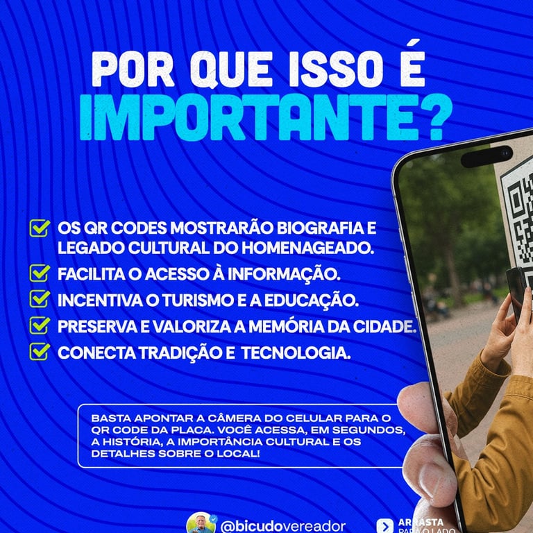 Proposta de autoria do vereador busca conectar cidadãos e visitantes à história e cultura local através da tecnologia em placas públicas.
