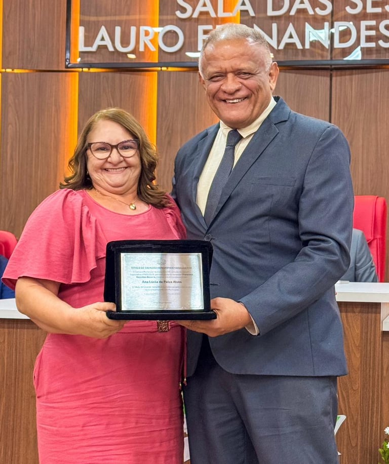 Casada desde 1993 com Josenilson Alves, com quem tem duas filhas, Ana Lúcia tem imenso orgulho de sua trajetória no município. "Para ela, ser de Caraúbas representa pertencimento, identidade e gratidão pelas oportunidades de vida", celebrou o vereador Francisco Hamilton, autor da honraria.